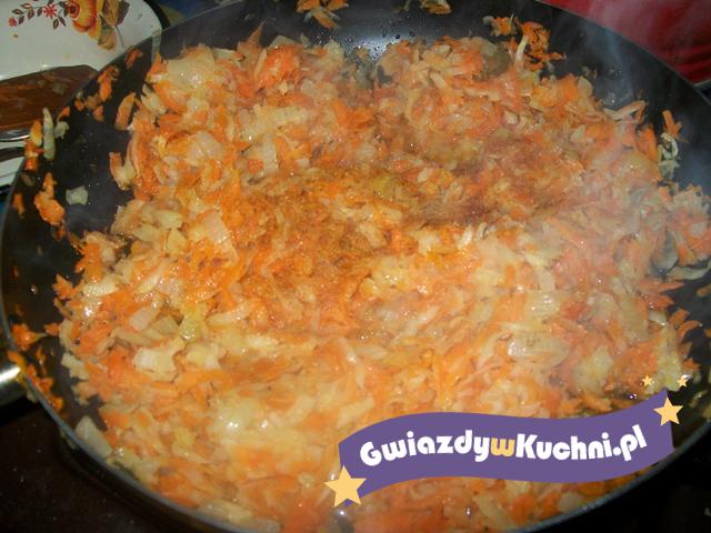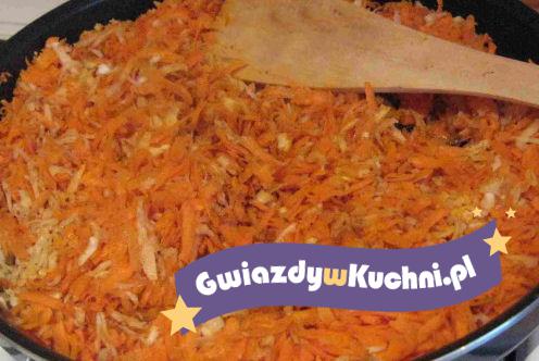 Wszystkie warzywa zetrzeć na tarce, dusić na małym ogniu do miękkości.