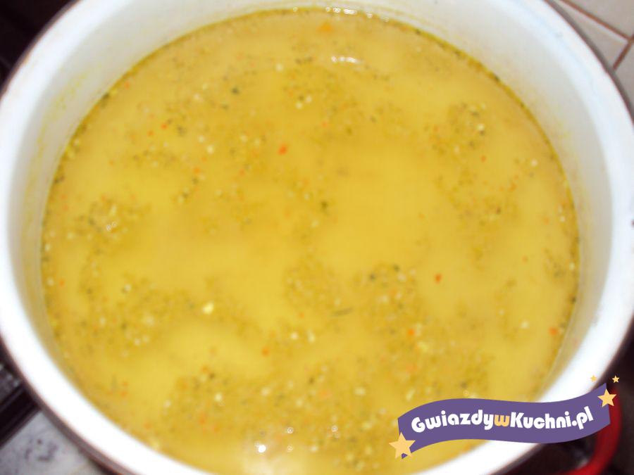Wodę zagotowujemy. Następnie dodajemy do wody kucharek, kostkę bulionową, zagotowujemy. Żelatynę rozrabiamy w 1/2 szklanki zimnej wody, dodajemy do gotującego się wywaru, zagotowujemy. Można zalewać mięsko, rybkę.