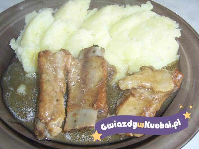 Żeberka przełożyć do rondla, podlać trochę wody, dodać liść laurowy, gotować.