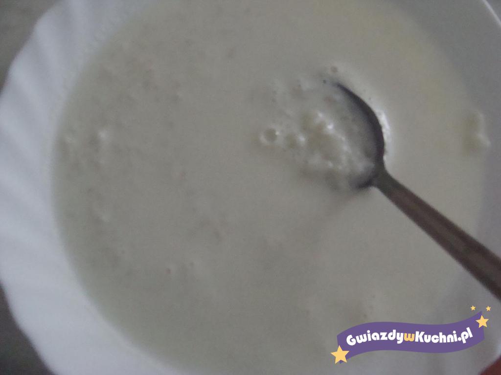Ryż przebrać, namoczyć w zimnej wodzie, a następnie wyłożyć na cedzak. Kiedy obcieknie, ugotować go na półmiękko w wodzie, po czym włożyć do gorącego mleka i gotować na małym ogniu, od czasu do czasu mieszając. Pod koniec dodać sól i cukier.