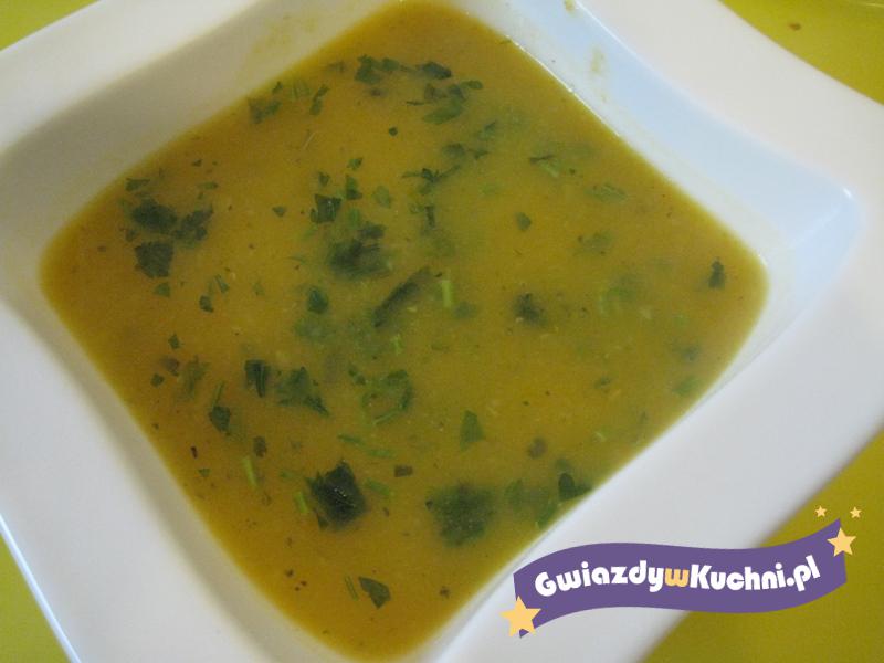 Do wody wrzucamu umytego i pokrojonego fileta. Warzywa obieramy tzn. Marchew, pietruszkę, cebulę, ziemniaki; kroimy wrzucamy do wody z mięsem. Gotujemy aż mięso i warzywa będą miękkie. Dodajemy kostkę bulionową i liście selera i jeszcze chwilkę gotujemy. Całą zupę miksujemy na papkę. Podajemy na talerze, posypujemy natką pietruszki.